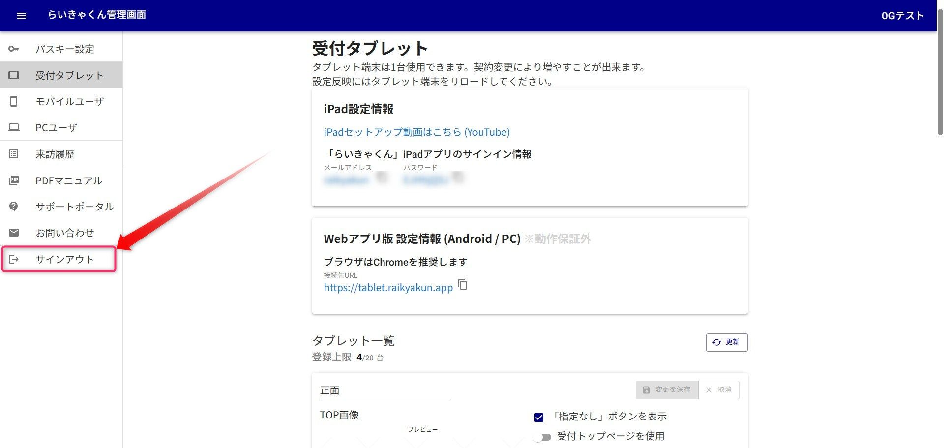 管理画面に受付タブレットが未登録の場合でも、この操作により状態がリフレッシュされ改善するケースがあります。